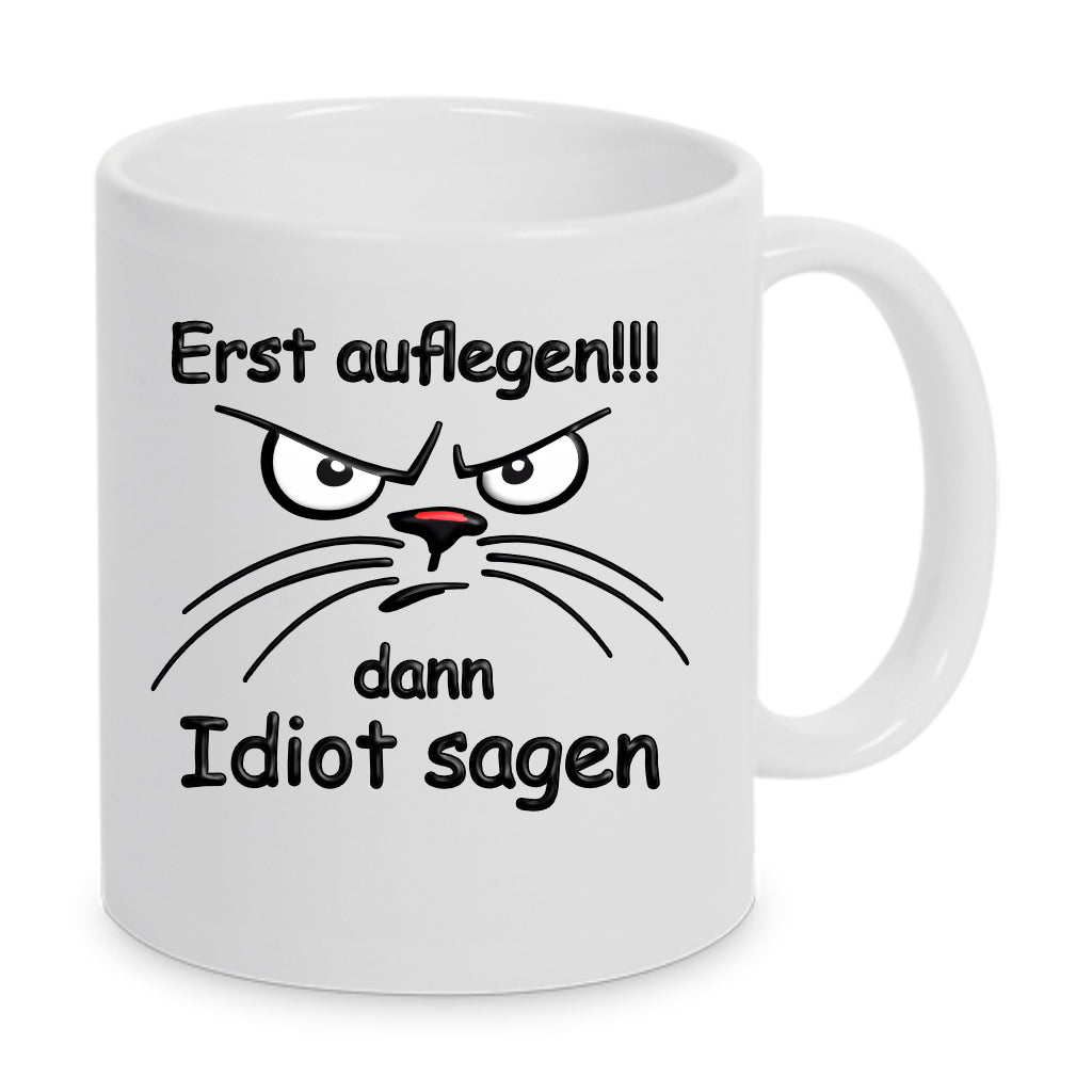 Erst auflegen, dann Idiot sagen - Tasse